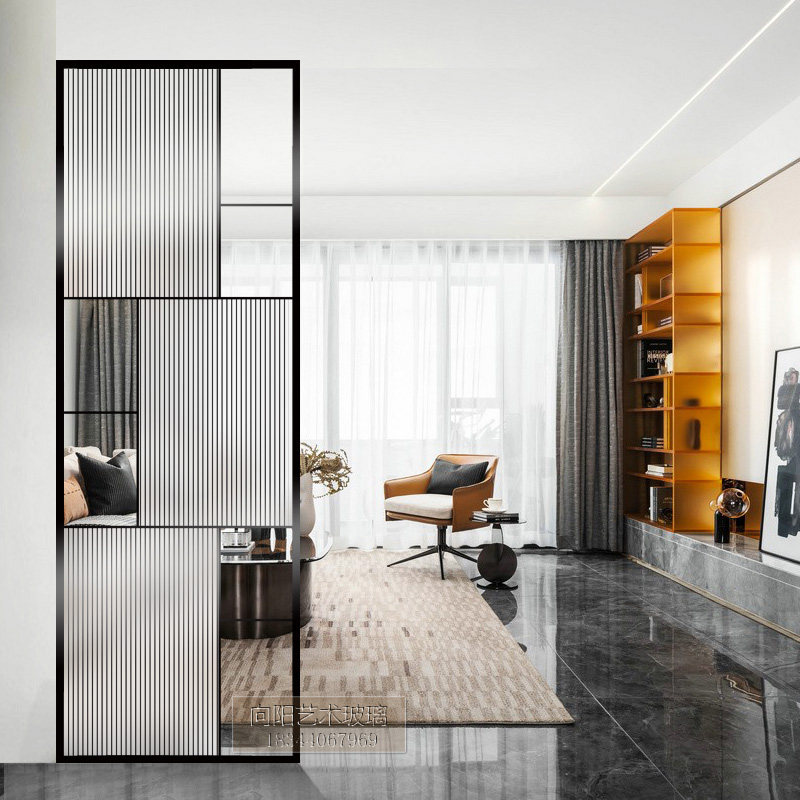 Modern minimalist steel-made art glass screen partition double sided light transmission light and luxurious living-room bathroom Kitchen set to do