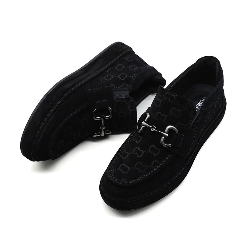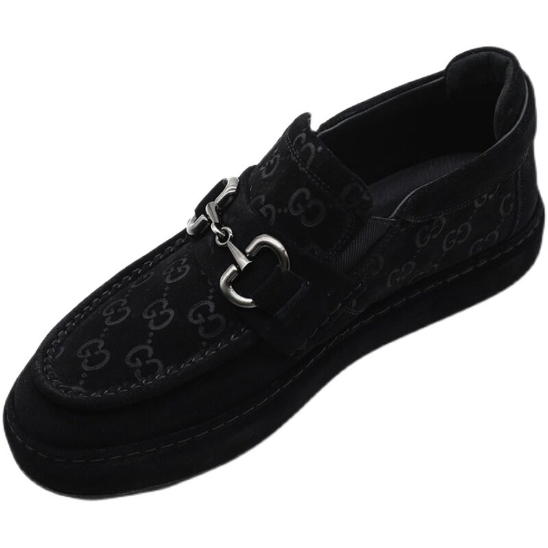 Genuine leather men's shoes 2022 spring and autumn men's thick-soled increased suede shoes all-match buckle trend frosted leather casual shoes