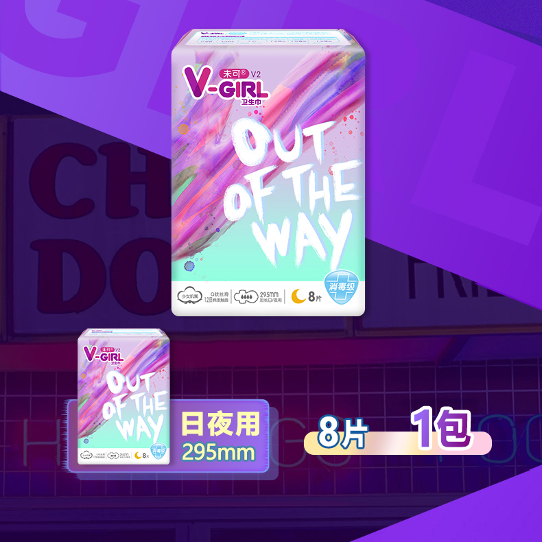 V-GIRL Unclean and hygienic cotton day and night with 295mm * 8 slices of pure cotton breathable teenage girl's aunt
