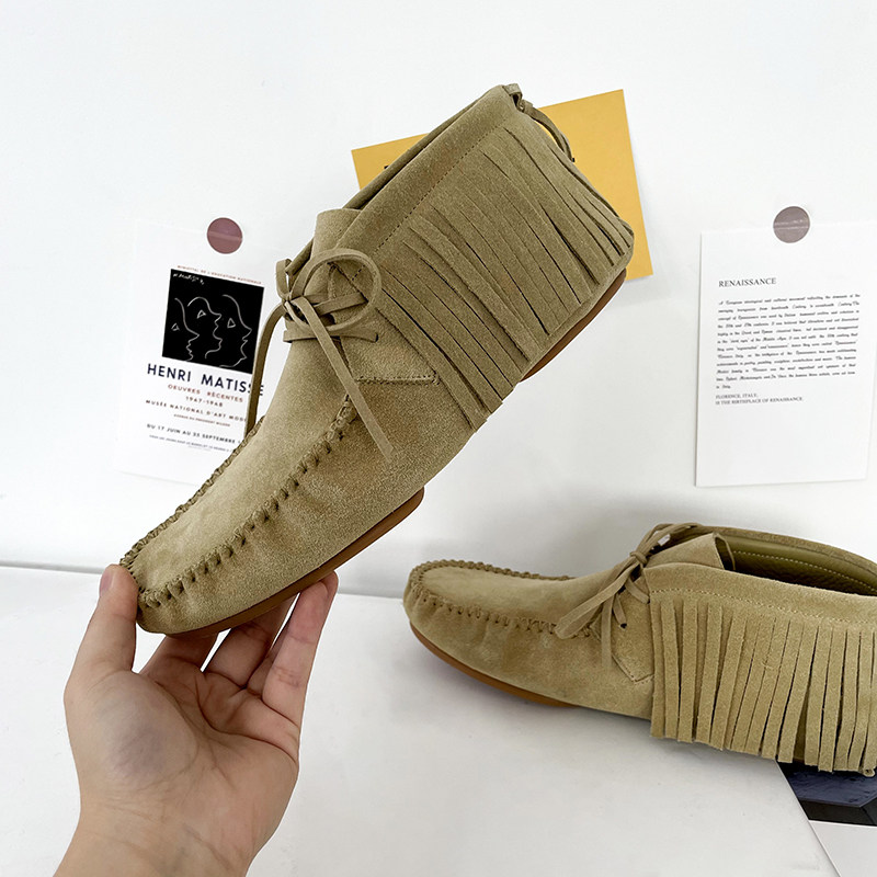 Ex-boyfriend 2022 Autumn Winter New Low Help Retro Round Head Flat-bottomed Lace Casual Frosted Leather Streaming Suzu Bean Shoe Tide