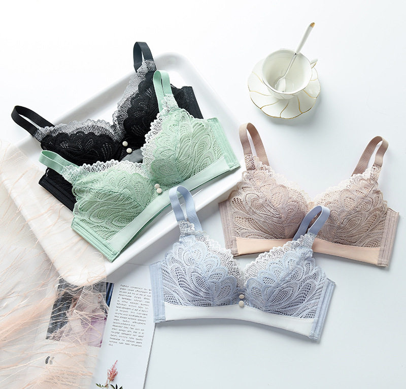 Neon underwear women's non-steel ring small chest thick and thin gathered antibacterial bra with auxiliary milk lace adjustable bra