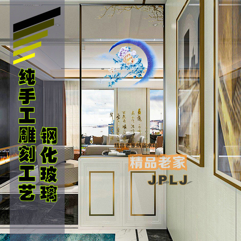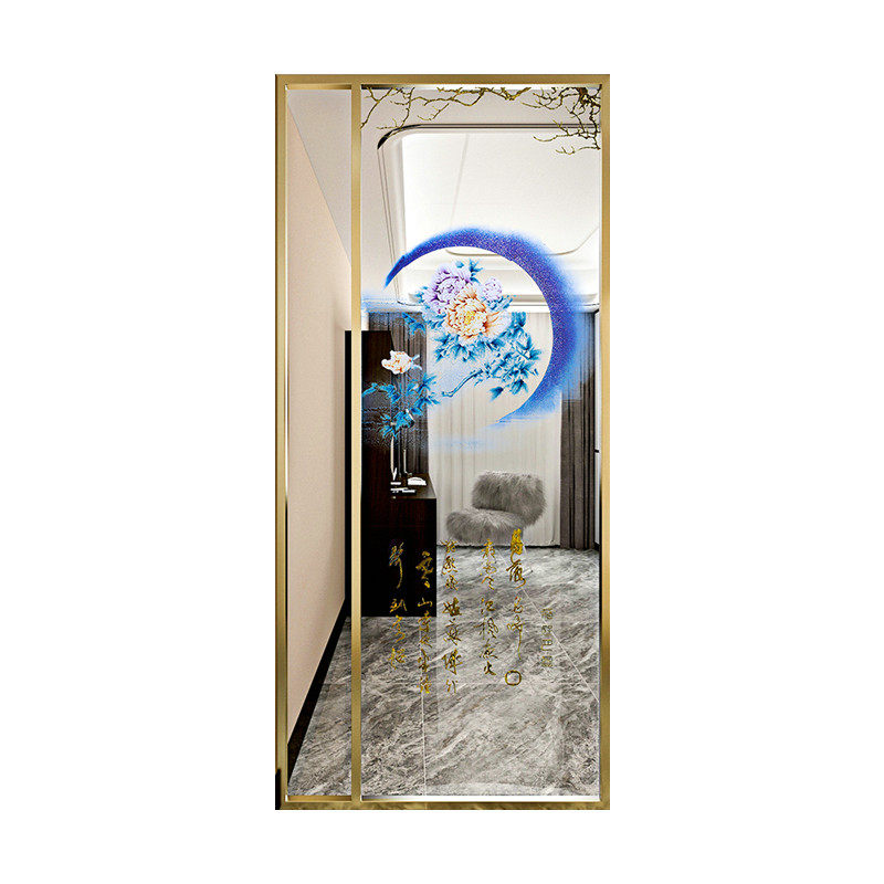Customized transparent tempered carved art glass partition wall screen home modern Chinese style entry porch powder room