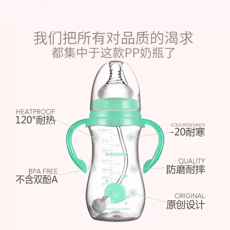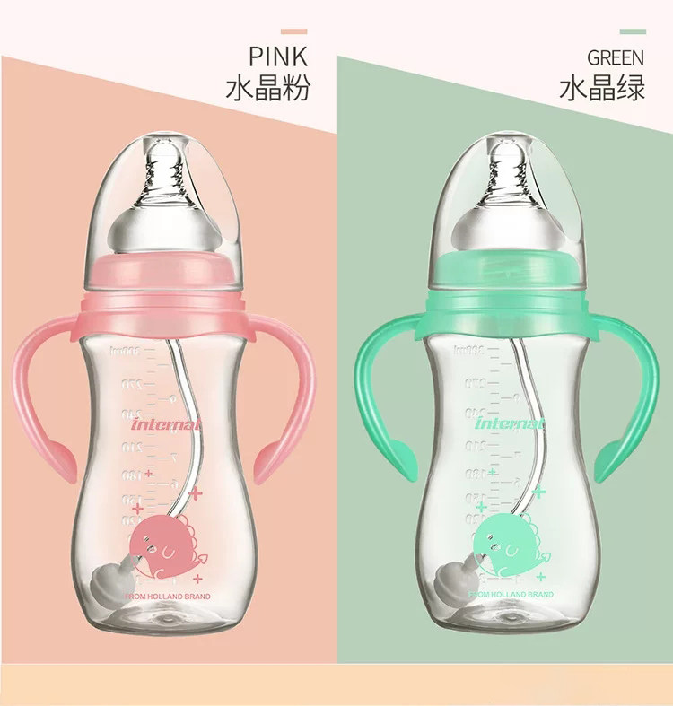 Straw bottle PPSU anti-fall imitation breast milk anti-flatulence bottle 1 year old 2 year old big baby drinking cup wide caliber