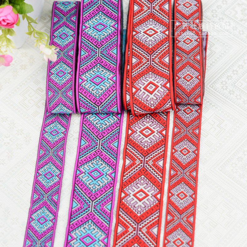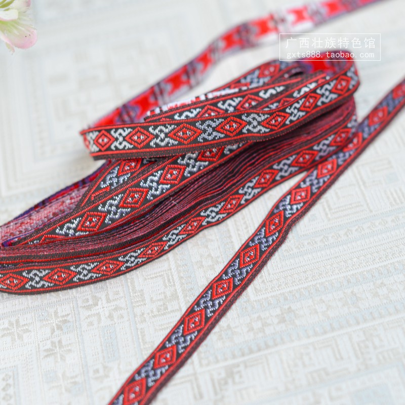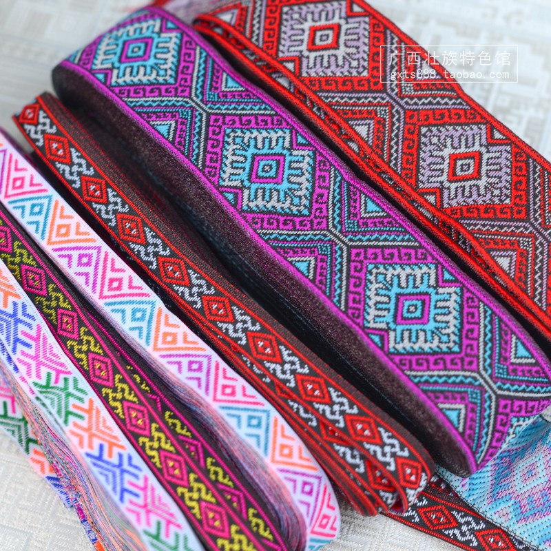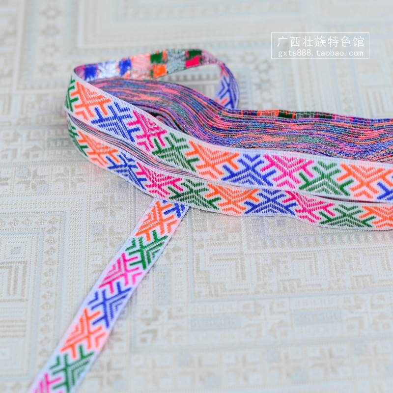 Guangxi traditional national costume decorative lace Zhuang collar trousers cuffs headdress Zhuang brocade webbing fabric