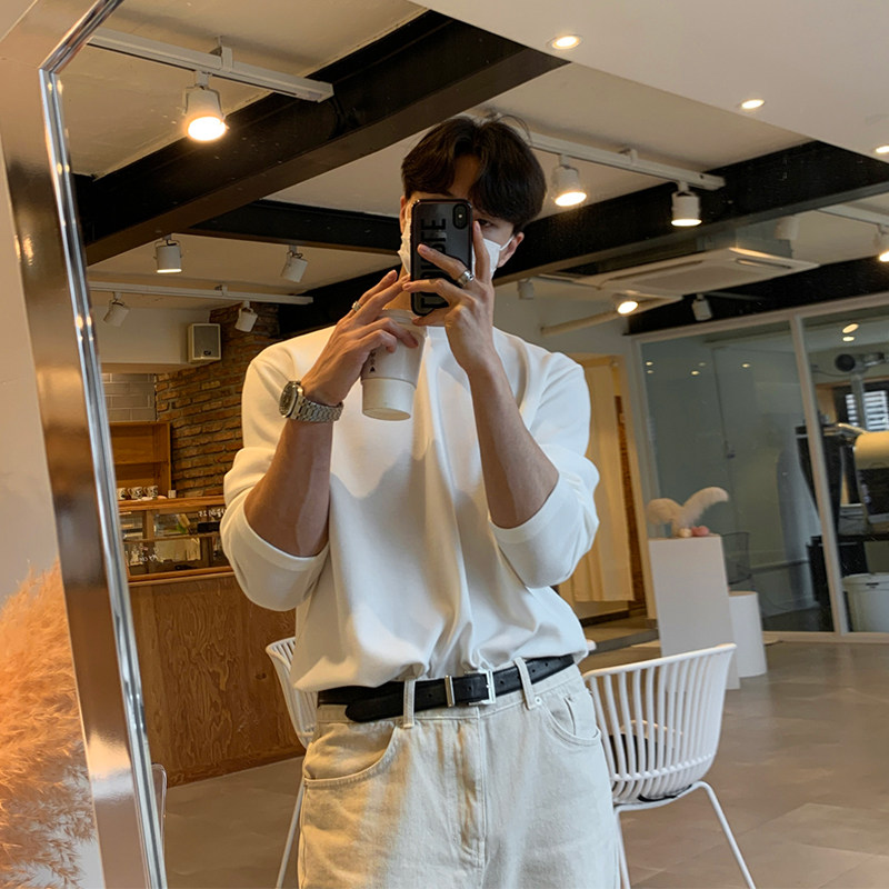 Bishe loose new cotton four seasons T-shirt Korean version long-sleeved top trend simple T-shirt round neck inner wear men