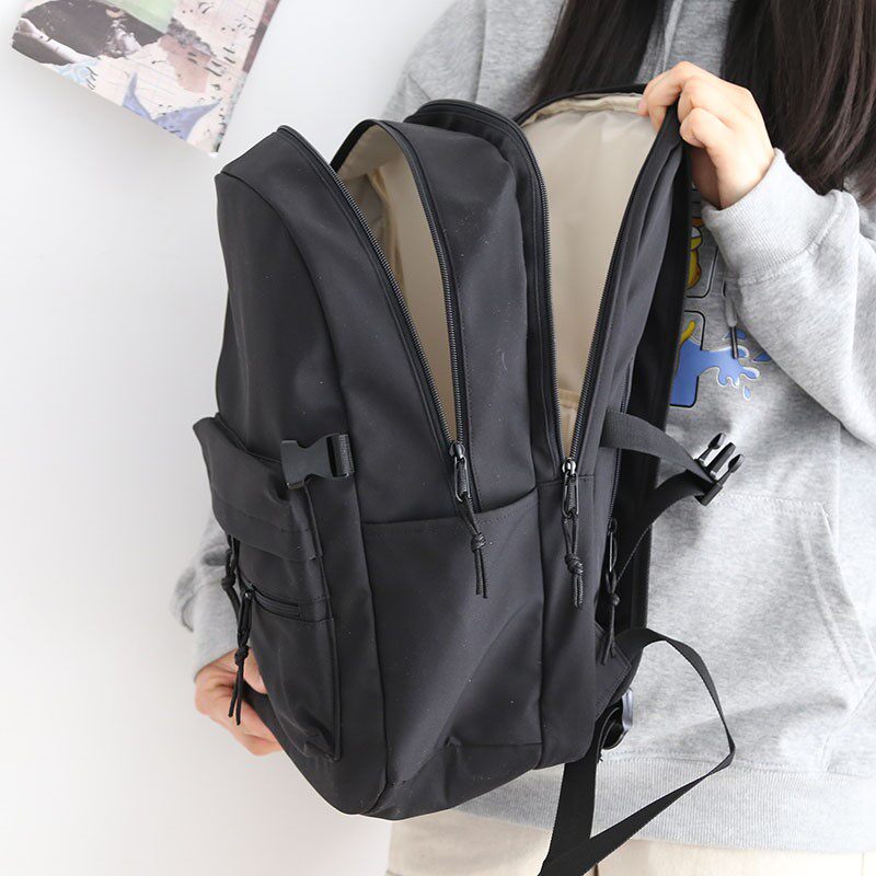 Hong Kong Day Department Black & White Pure Color Large Capacity Double Shoulder Bag Men's Bag Female Large Student Student Shoulder Bag Woman Double Shoulder Bag