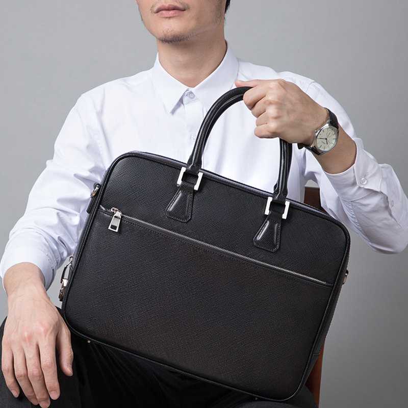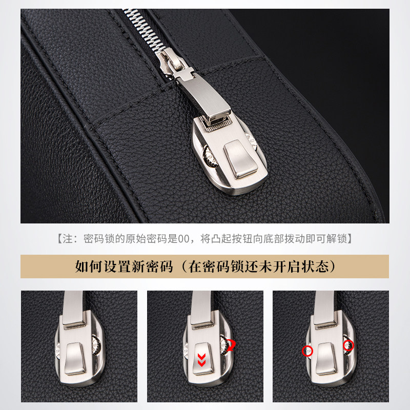 GIONAR Code Lock Burglar-Proof Insert Lever Box Men Business Briefcase Genuine Leather Computer Handbag Headlayer Cow Leather
