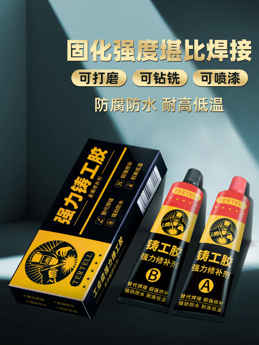 Foundry glue, strong universal glue, multi-functional high-strength special industrial metal repair agent, sticky iron, aluminum cast iron welding, welding glue, oil tank, water tank radiator, leak repairing, waterproof, high temperature resistant, ab glue