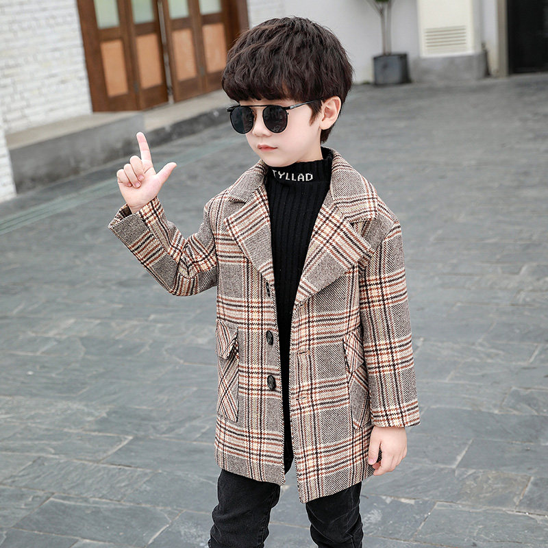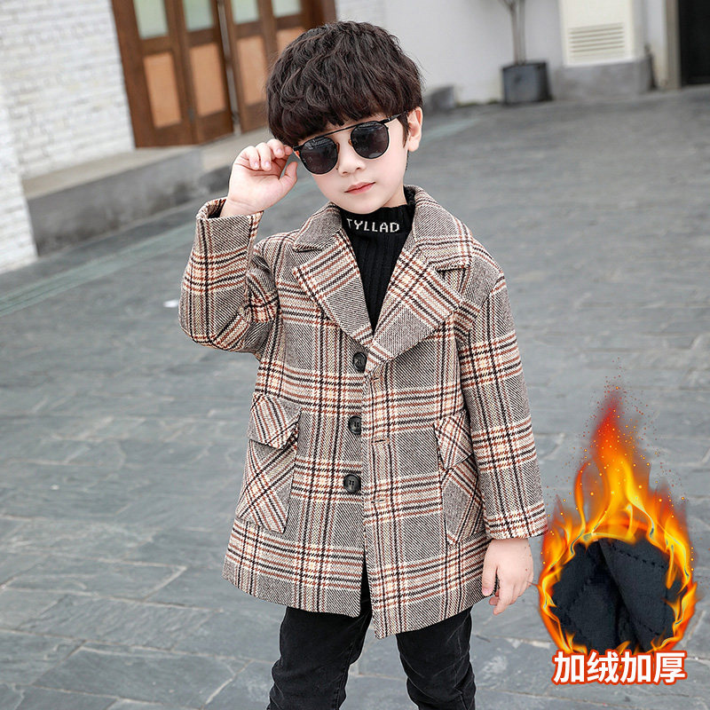 Boys winter trend plus velvet thick windbreaker children 2022 winter boys plaid coat fashion trendy children's clothing