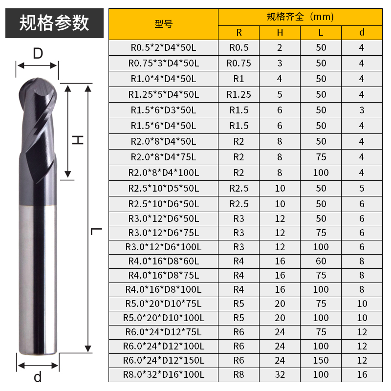 45 degree ball end milling cutter 2-blade hard tungsten steel alloy ball cutter cnc machining center CNC ball lengthening end mill