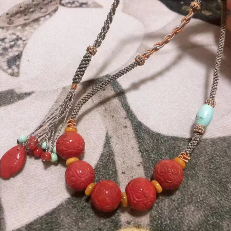Good decoration multi-color treasure pavilion hand-woven green pine south red clavicle chain pendant
