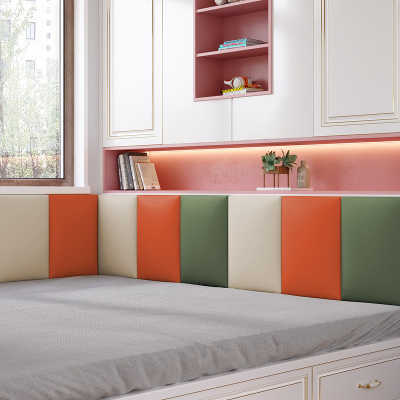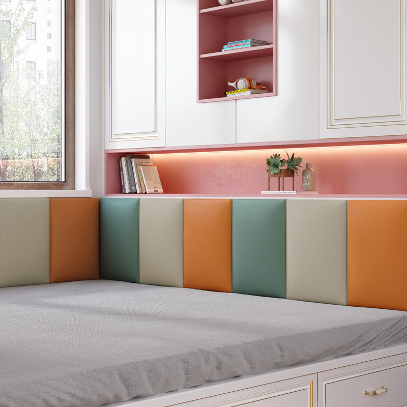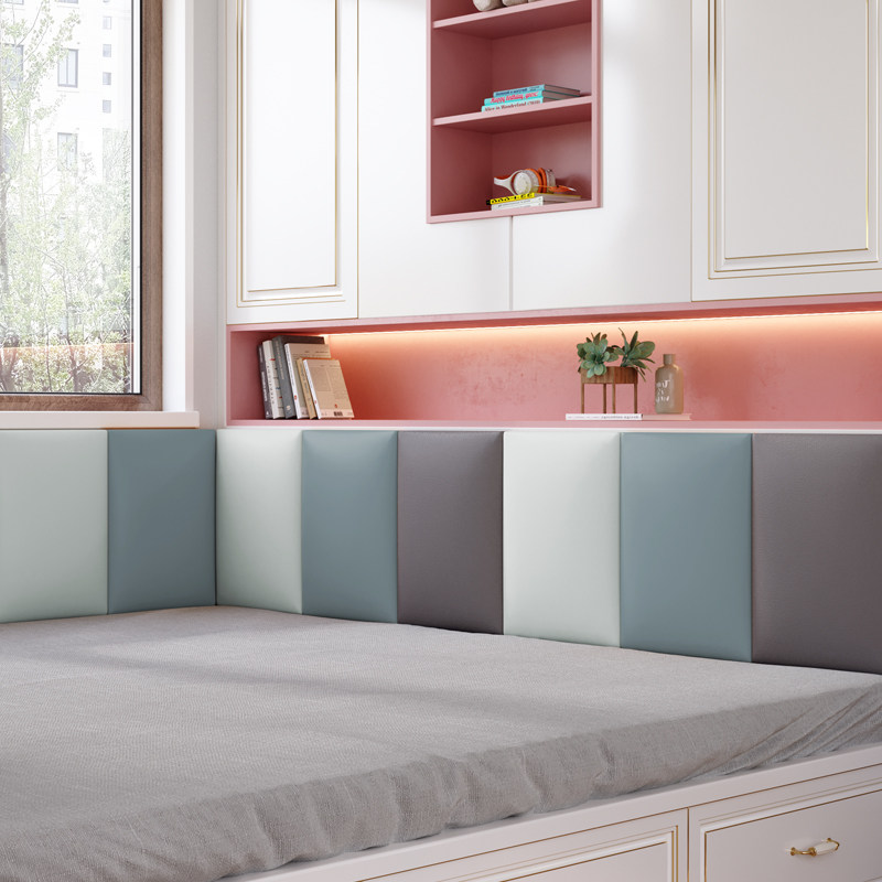 Soft bag headboard Bedside Cushion Children Tatami Leaned Against Soft Bag Wall Stickproof Head Tech Cloth Cushion Self-Glued Crashworthy Wall Patch Soft Bag