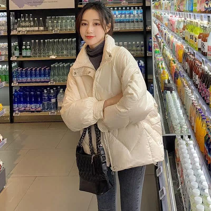 Rice white short down clothes women's clothing winter 2021 new Korean version loose black small sub jacket light and medium long padded jacket