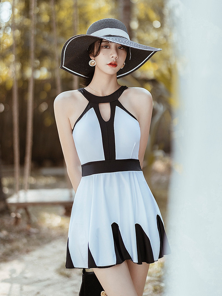 Skirt-style even for a swimsuit in a dress.
