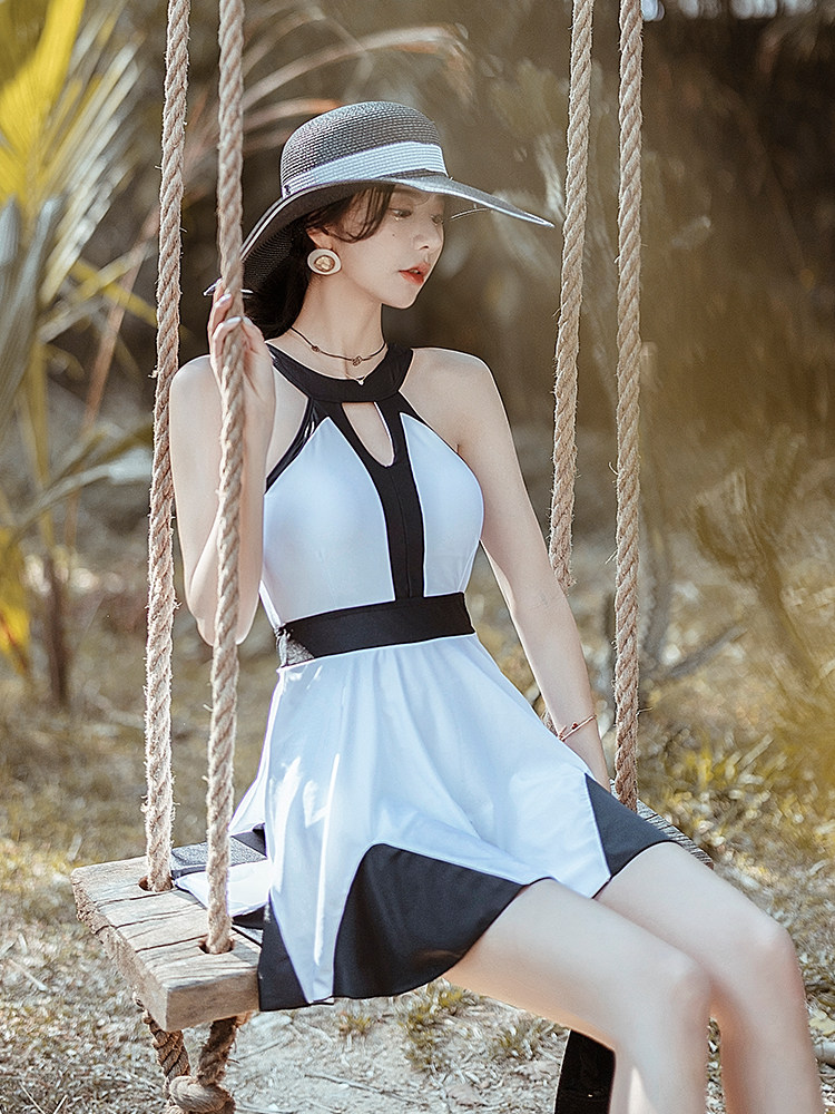 Vido New Sexy Poly-Woo Swimsuit Woman Little Clear New Fairy Fan Chains Slim Conservative Dress Spa Swimsuit