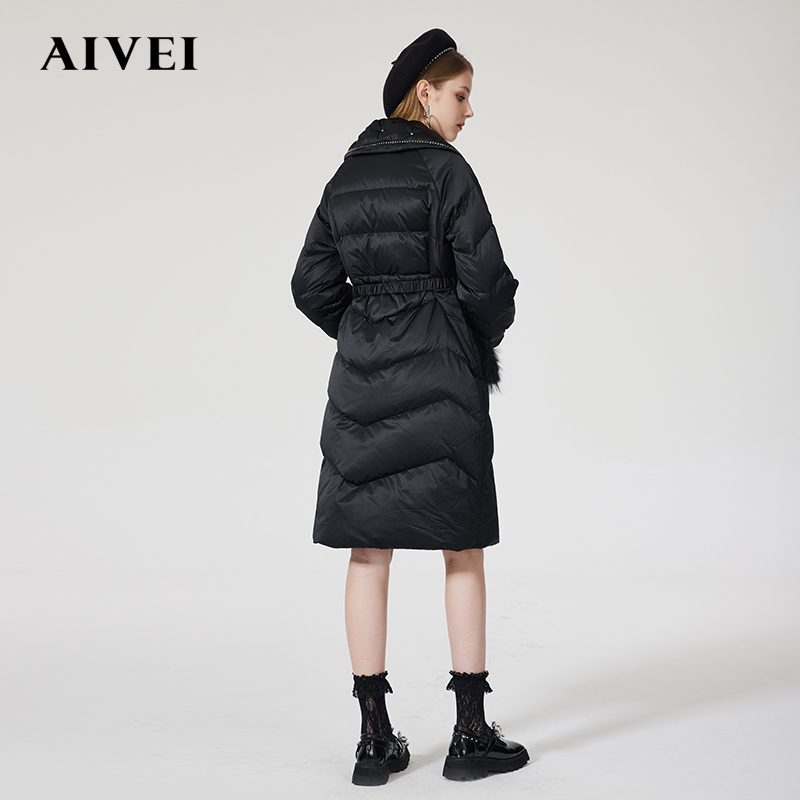 AIVEI is pleased to congratulate Ivy 2021 winter new nail drill lapel waist fur pocket long down jacket N0660133