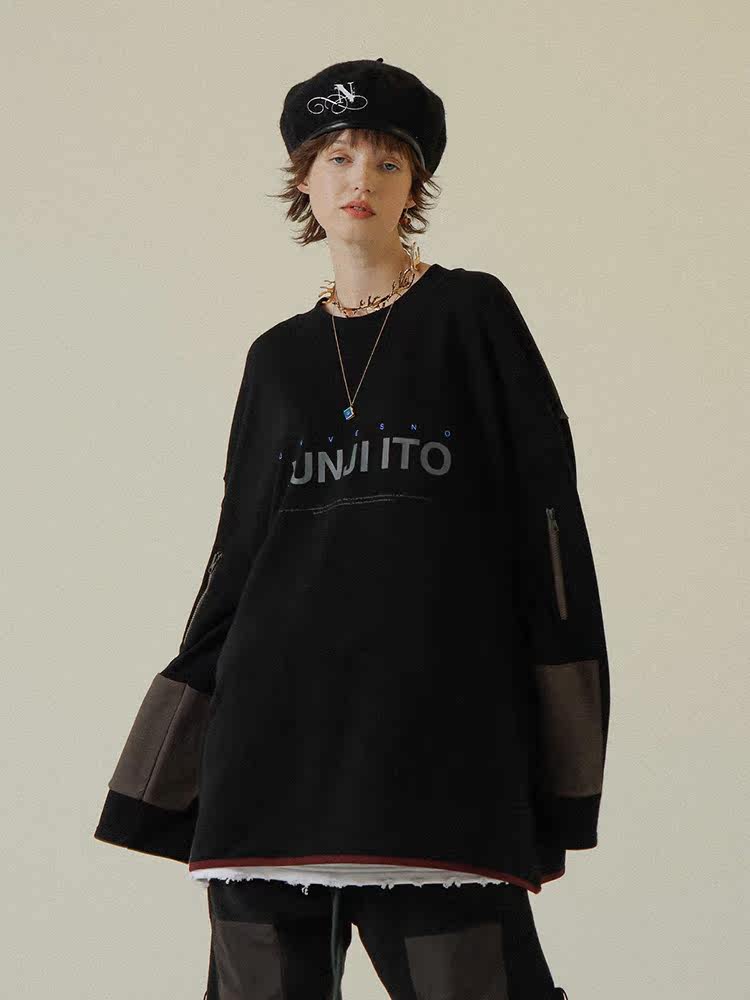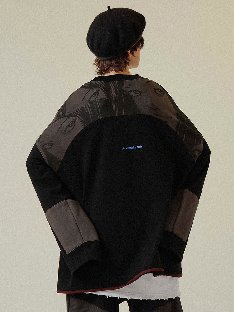 UNVESNO Ivy Runway Two joint hip-hop Chauder Katong Man printed lovers loose thin and long sleeve necropolis