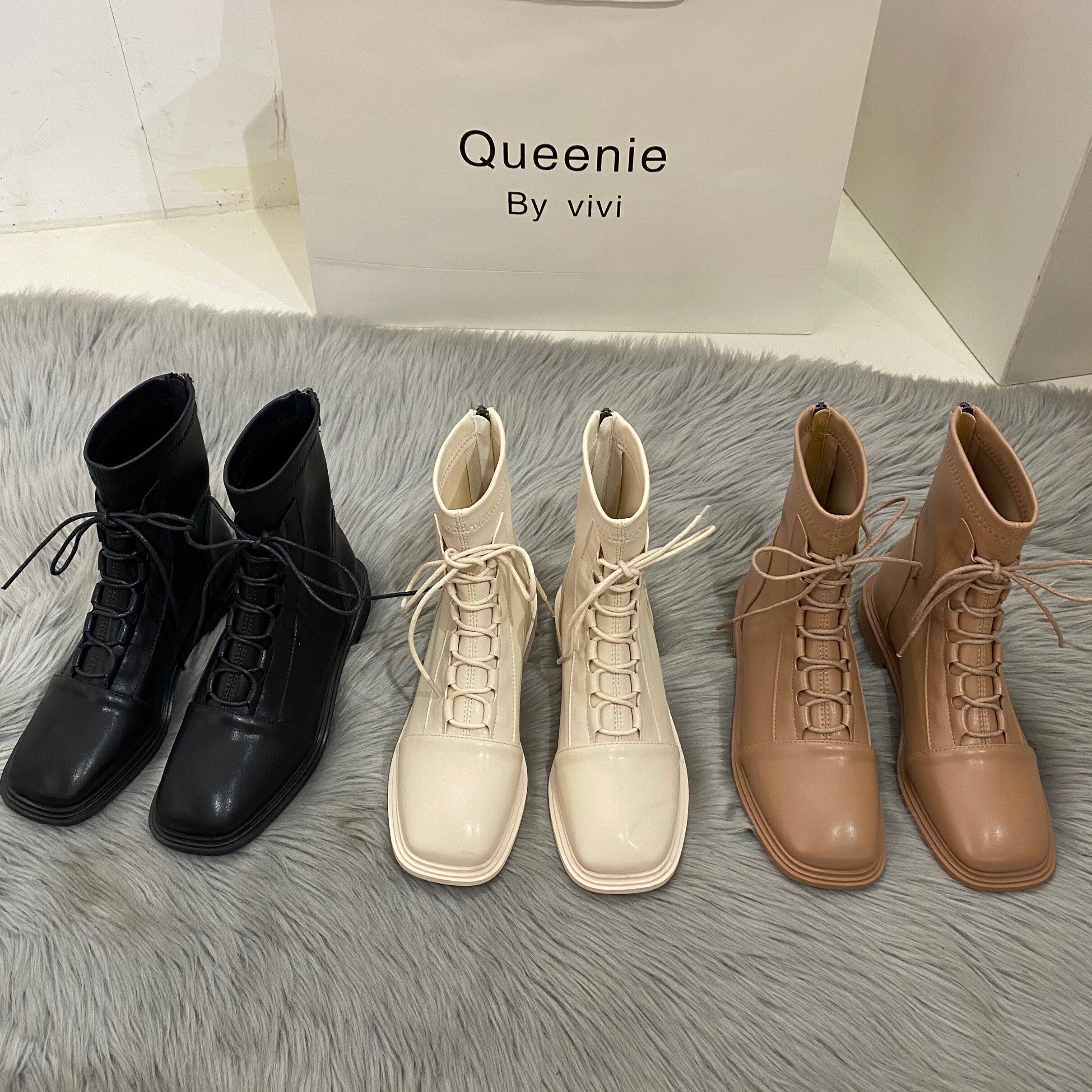 ITSK Martin boots women's British style soft leather lace-up black ankle boots