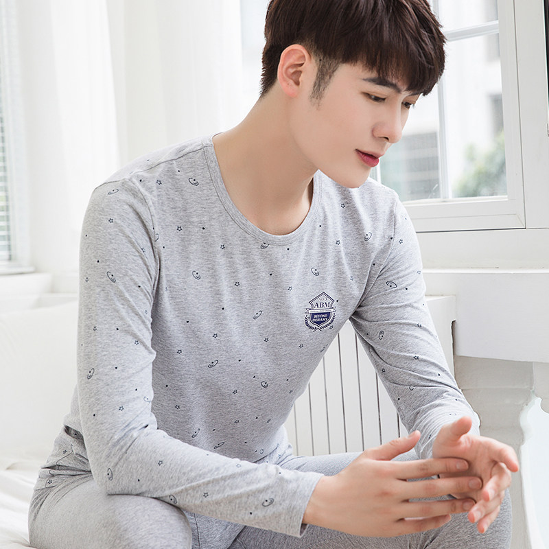 Pure cotton men's autumn clothes sanitary pants suit youth thin cotton junior high school students spring and autumn heating clothes men