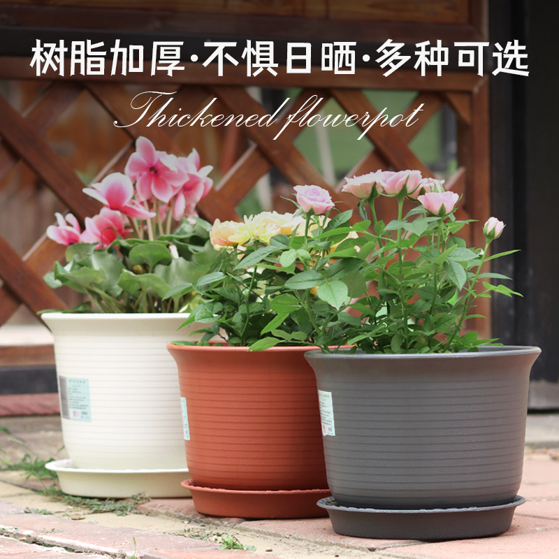 Gallon flowerpot with tray thickened resin round orchid gold Kudo meat potted vegetable imitation ceramic plastic large