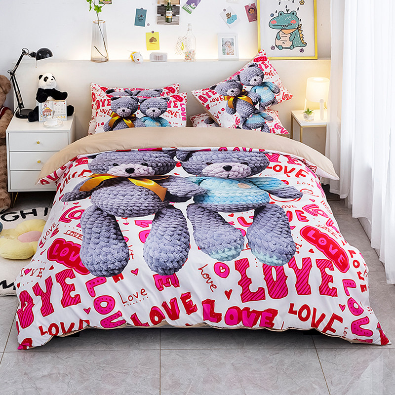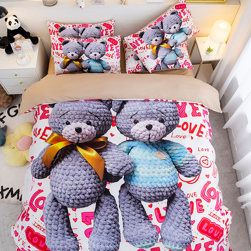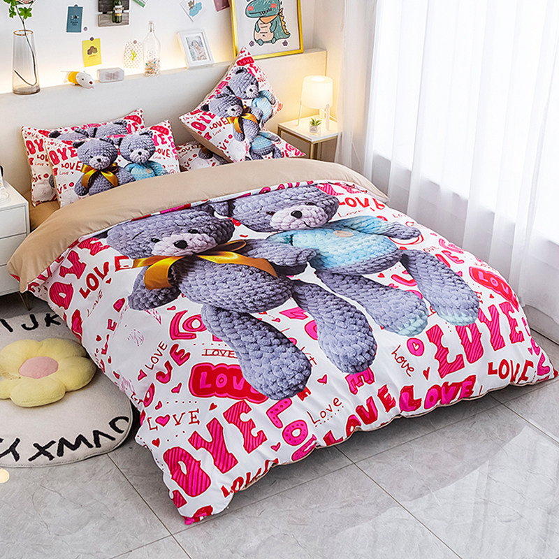 Cute doll bear quilt cover girl personality kit single bed sheet three-piece set 1 2 1 8 dormitory four-piece set