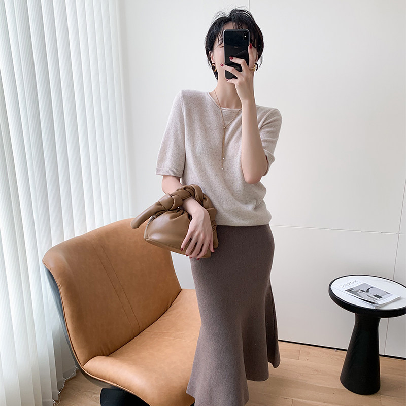 Track 98 wool Roll round collar base color design fashion to repair five - point sleeve knit knit undershirt