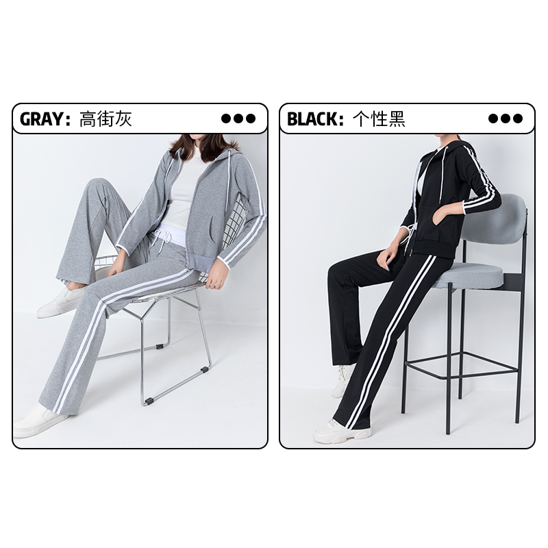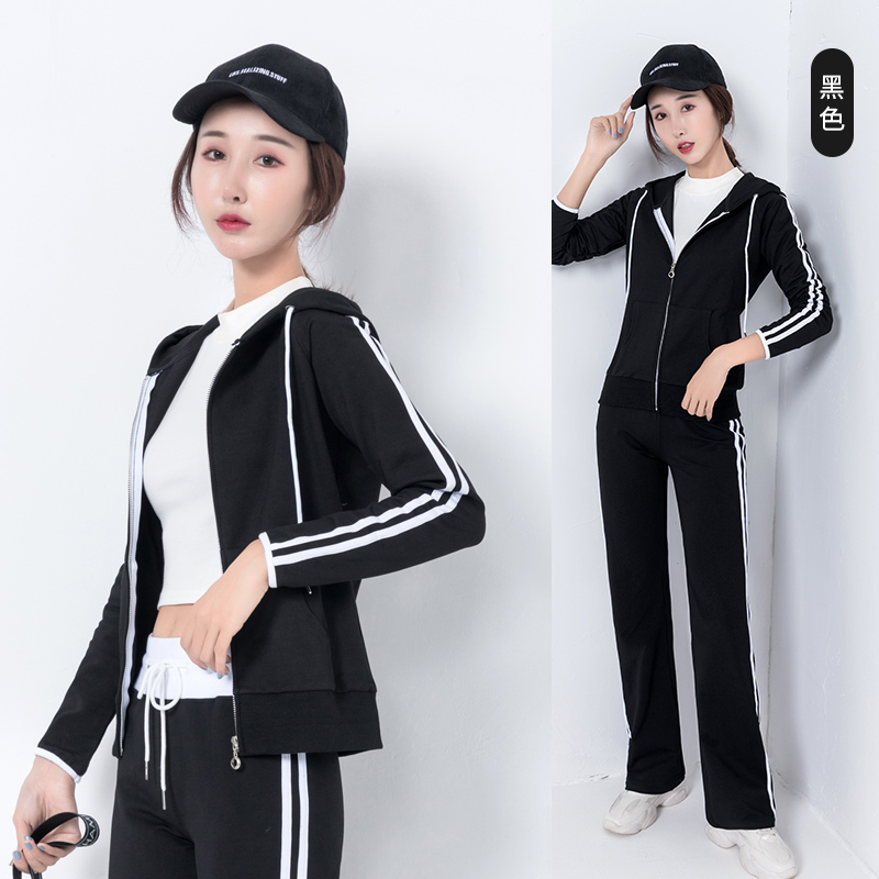 Casual sports suit women's fashion brand 2022 spring and autumn new black loose fashion thick T-shirt large size two-piece set