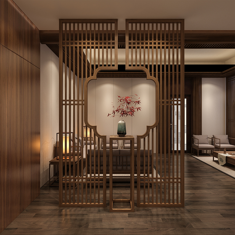 New Chinese Entrance Solid Wood Partition Screen Living-room Hotel Tea Room Hollowed-out decorated villa Custom Xuanguan Wall seat screen