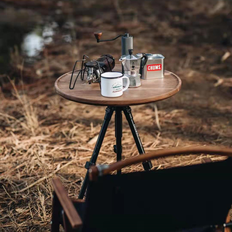 Outdoor Camping Camera Tripod Small Round Table Black Walnuts Wood Folding Table Oolulu Aluminum Alloy Table Plate Picnic Table