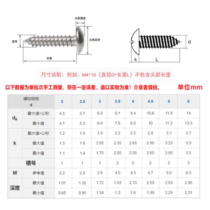 M3M4M5M6 304 stainless steel large flat head self-tapping screw flat head large umbrella head round head cross wood screw