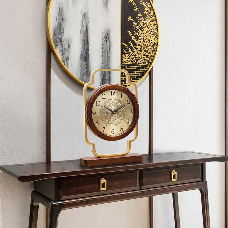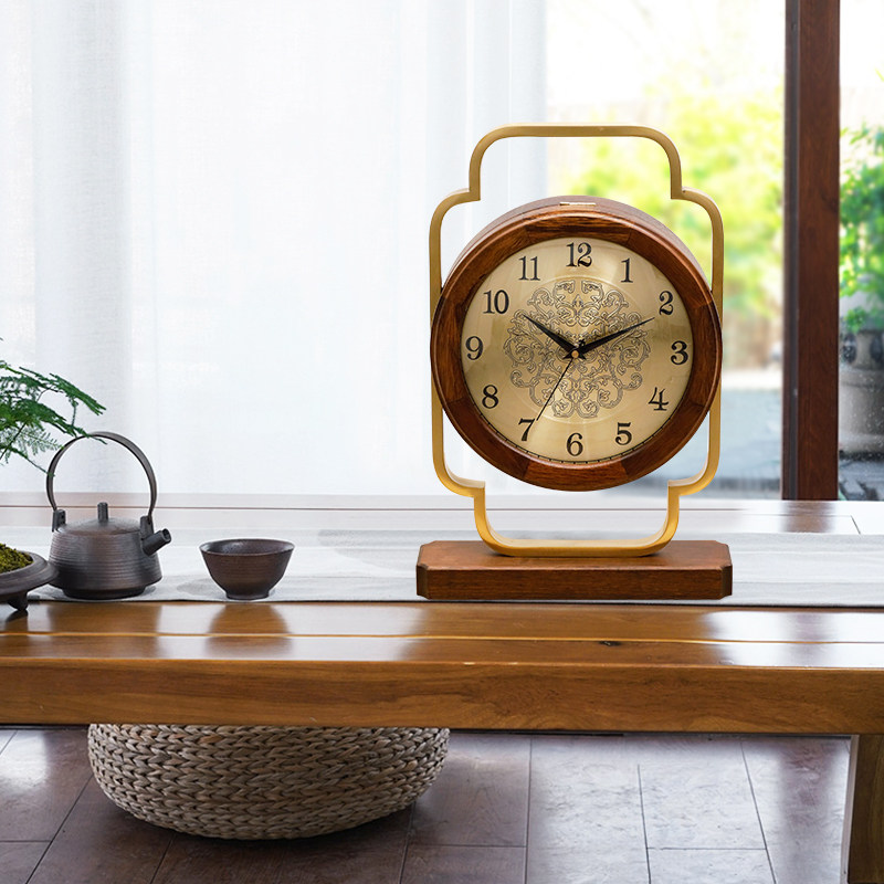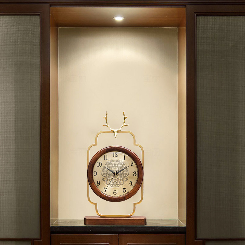 New Chinese solid wood brass clock double-sided seat clock sitting room seat clock pendulum piece Two sides look at the time table mute pendulum sitting clock