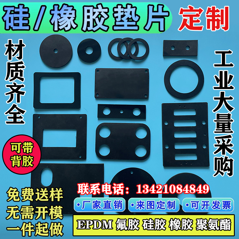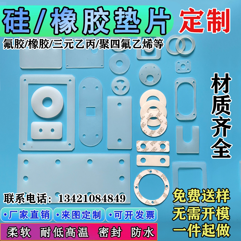 White silicone gasket self-adhesive 3M back glue high temperature resistant seal waterproof square round black rubber flat pad custom