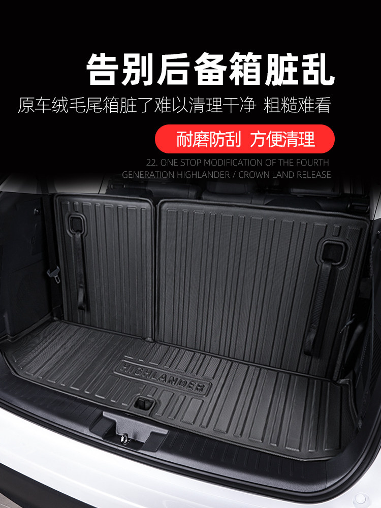 Applicable to 22 new fourth-generation Highlander trunk pads that fully surround the crown land and put the rear compartment pads into decoration