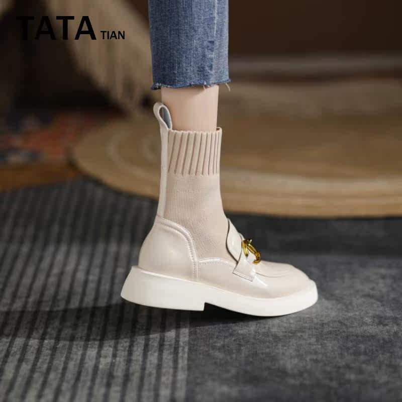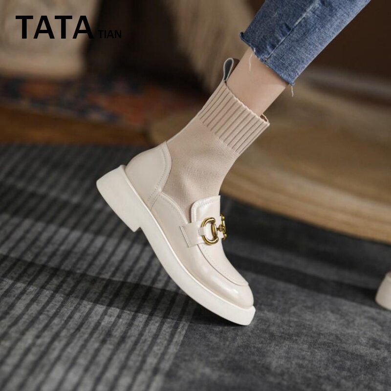 TATA TIAN He she is sweet genuine leather elastic skinny boots Footwear Boots Women Shoes Lefu Shoes Mary Treasures Short Boots Water Dumplings Boots