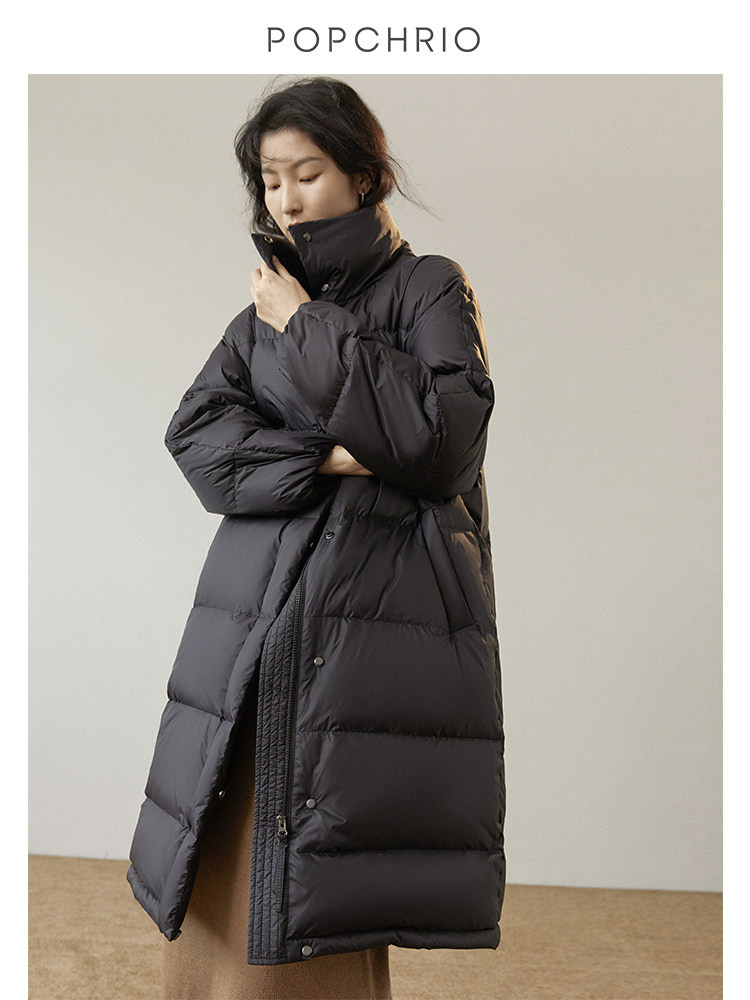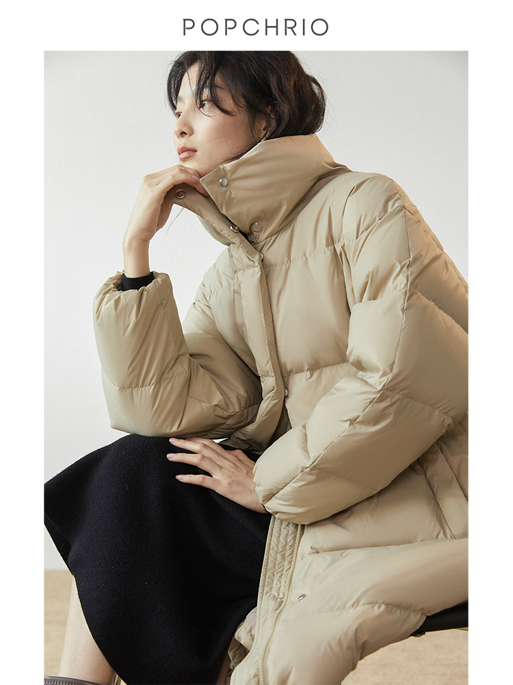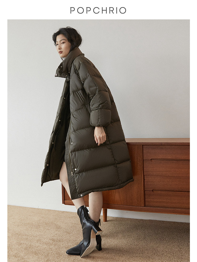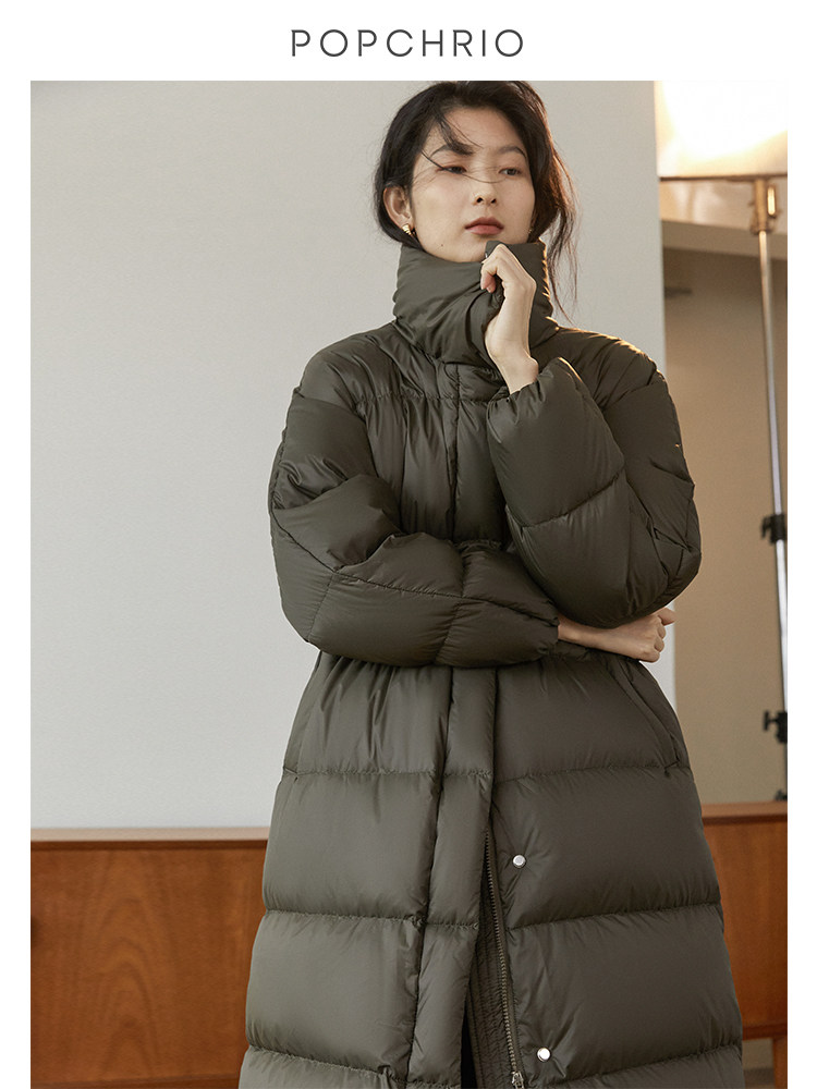 Ou Ke Rui North Shadow Down 90 white duck down stand-up collar mid-length version over-the-knee light down jacket thickened coat women