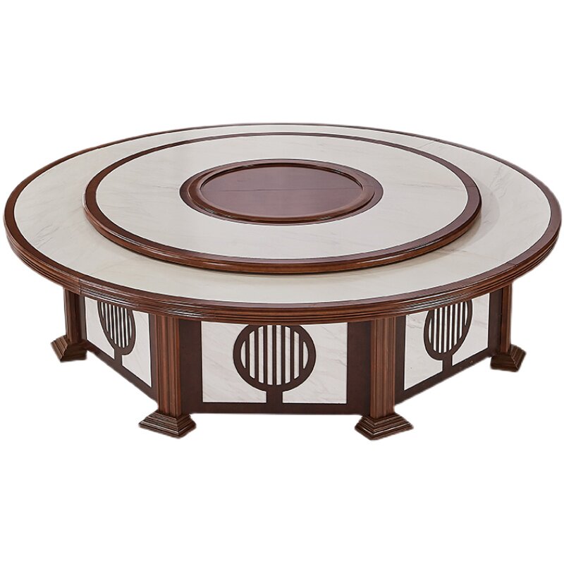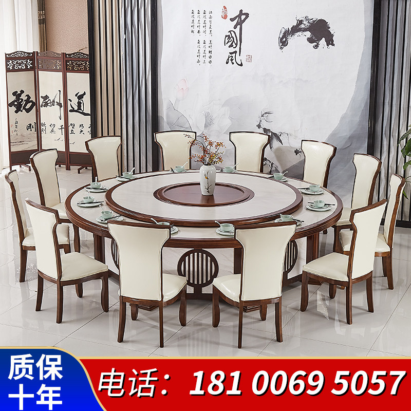 Hotel dining table electric Round Table commercial banquet solid wood new Chinese dining table and chair Hotel Club automatic turntable table