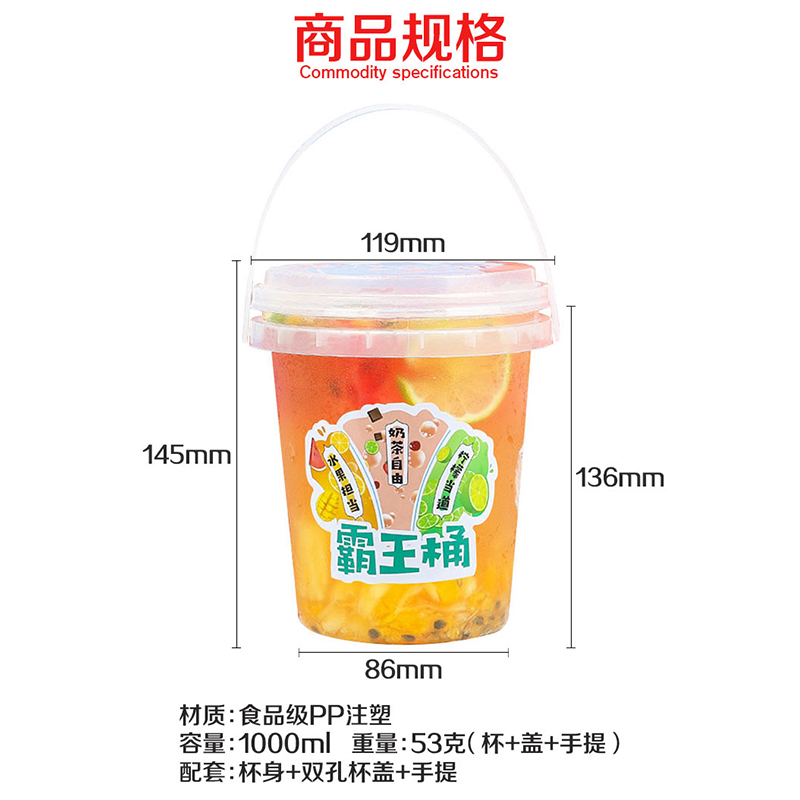 Thickened a bucket of fruit tea 1000ML large bucket milk tea cup net red with handle fruit bucket large double milk tea bucket