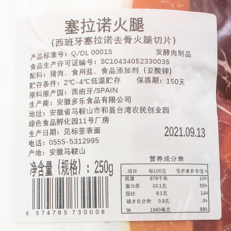Spain Serrano boned ham slice 120g serrano ham 200g New date Spain Serrano bone ham slice 250g