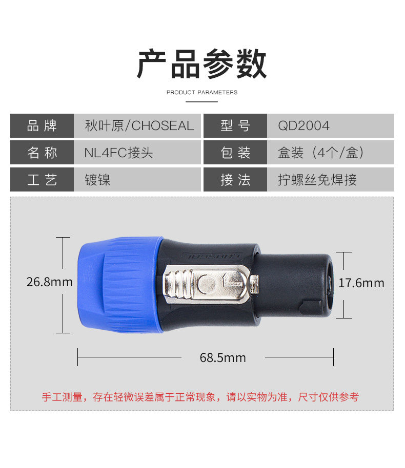Choseal autumn leaf original NL4FC sound plug 4 core ring sound plug Cannon head QD2004