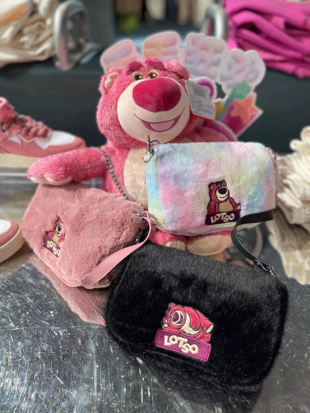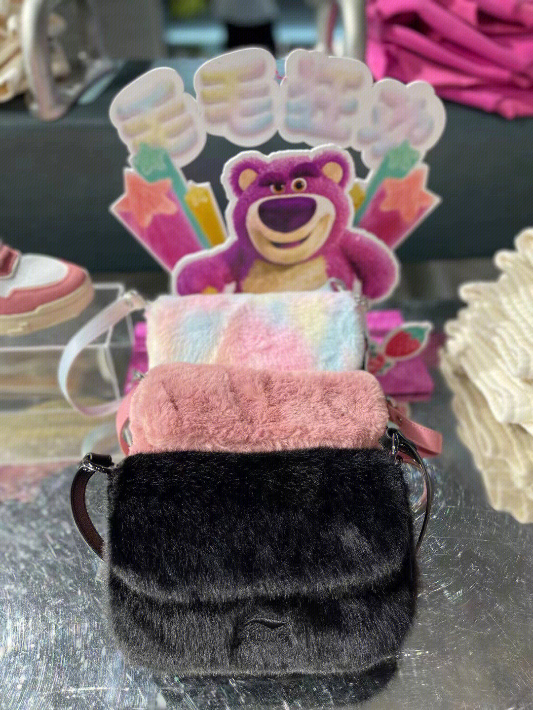 China Li Ning counter strawberry bear cartoon print plush fashion casual shoulder bag ABDR272