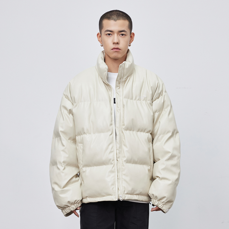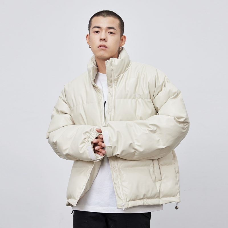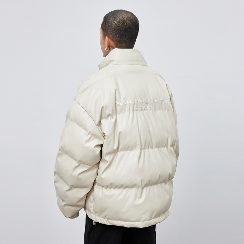 (WUT no sugar brand) original light card its beige pu jacket leather coat high street male and female tide sign thickened cotton clothing