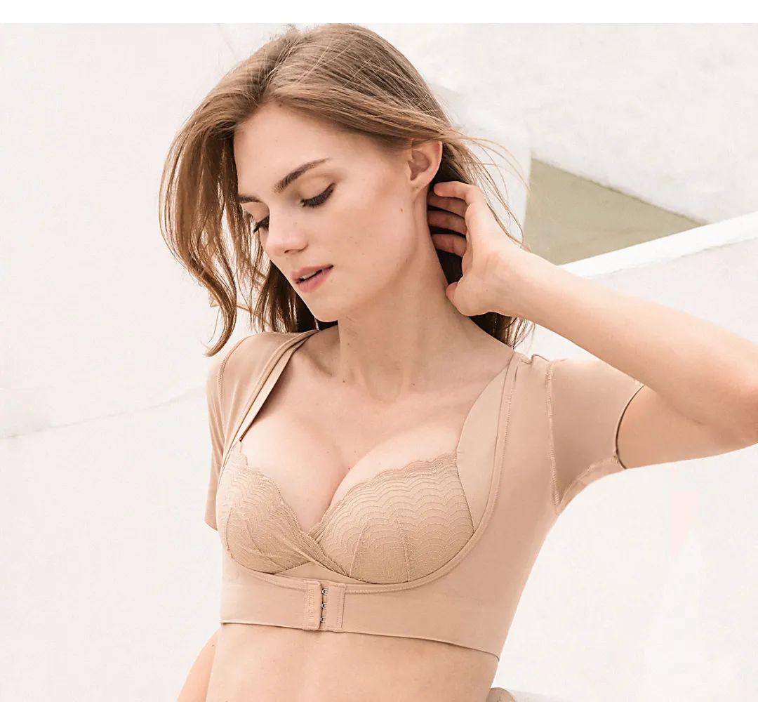 Vatican Kapo women's mid-sleeve half-sleeve chest support shaping top seamless seamless open shoulder pull back side anti-sagging