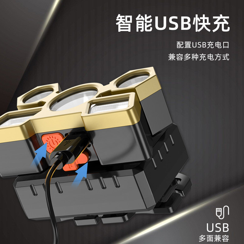 LED headlight strong light super bright head-mounted small flashlight outdoor long-range charging hernia five-head night fishing miner's lamp