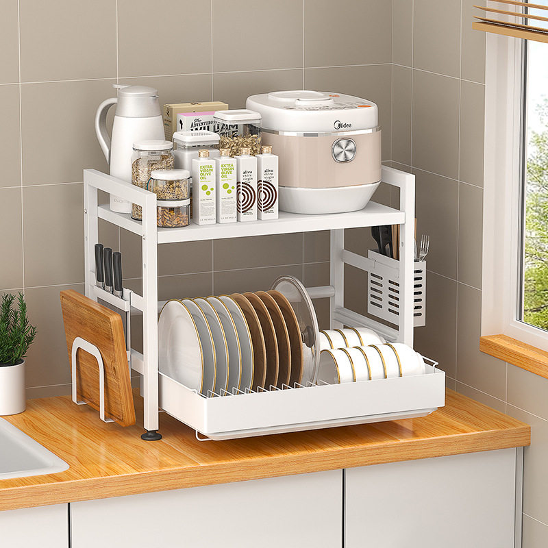 Multifunctional kitchen put bowl rack countertop rice cooker rack white dishes dishes storage drain shelf home
