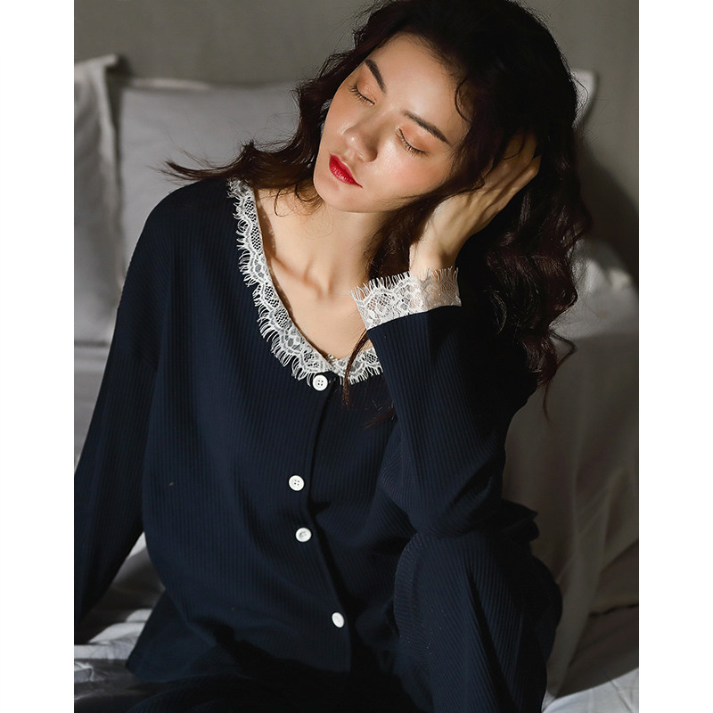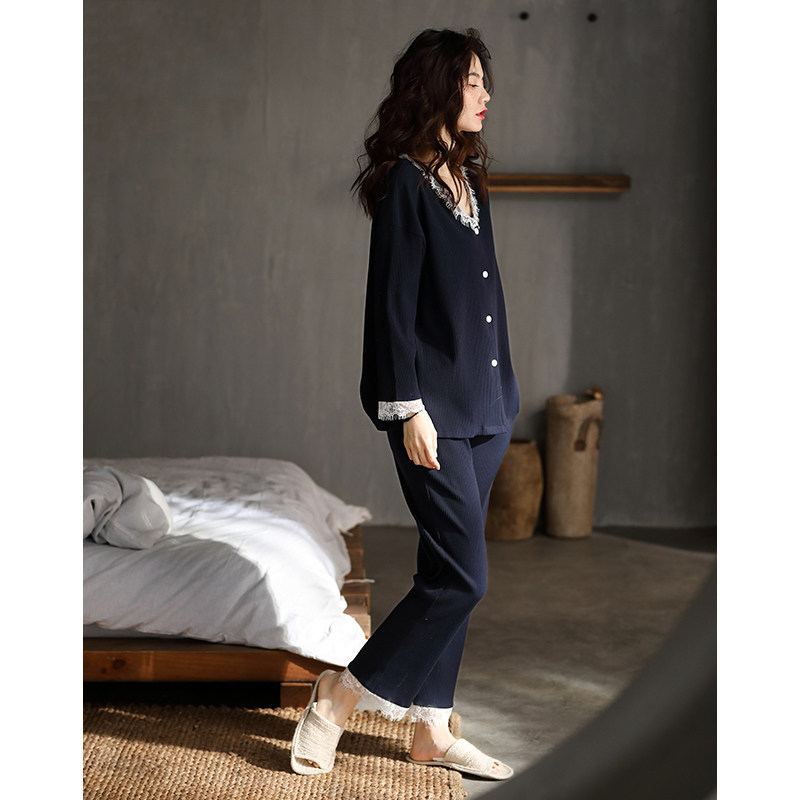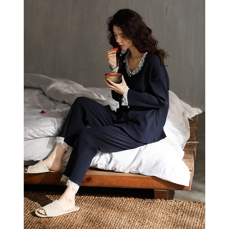 Sleepwear Lady Spring Autumn 2021 New Pure Cotton Long Sleeve Home Dress Lady Autumn Winter Sky Korean Version Casual All-cotton Set