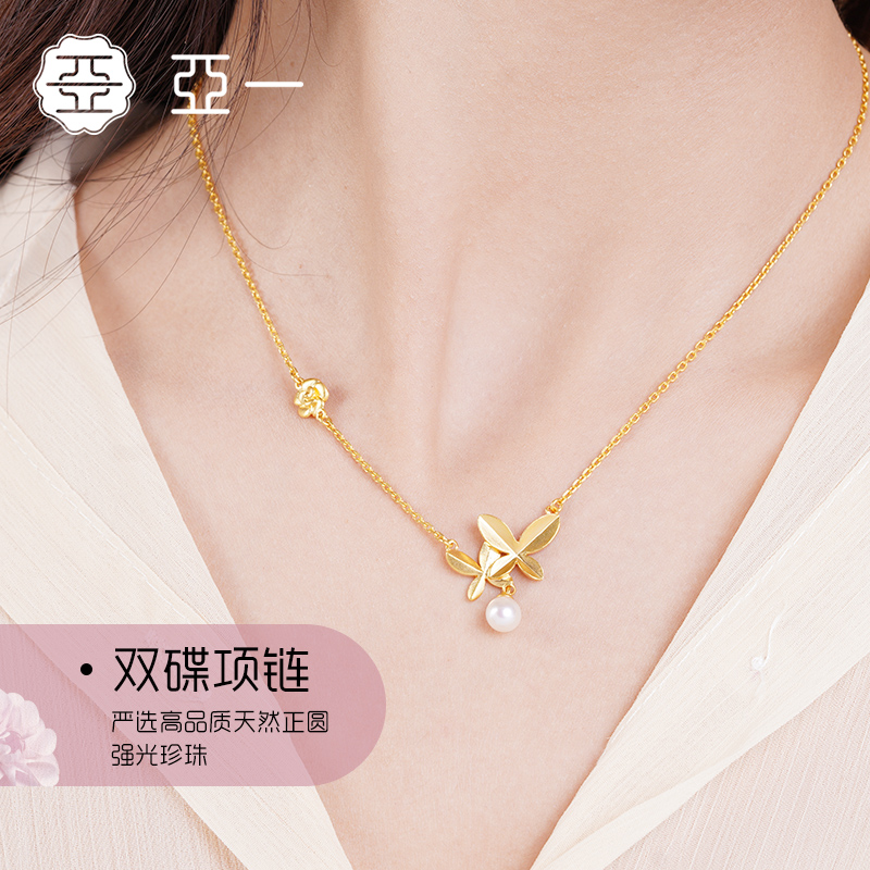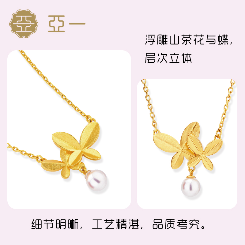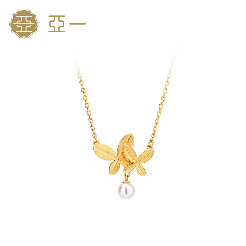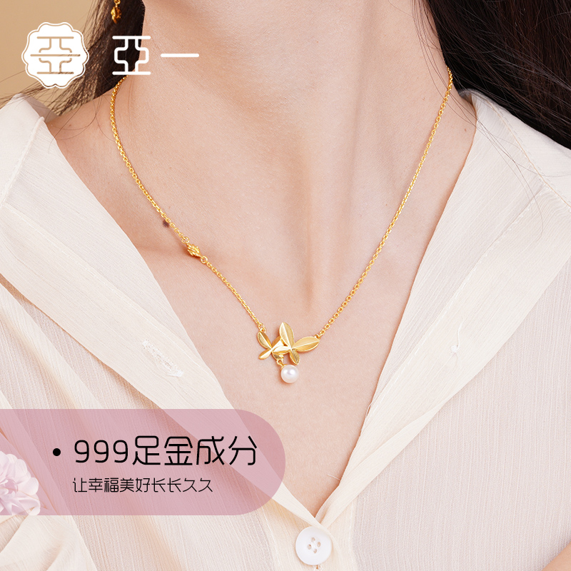 Aiyi Ancient 999 gold necklace Yijinshan tea butterfly butterfly butterfly pearl chain marriage send a soda box