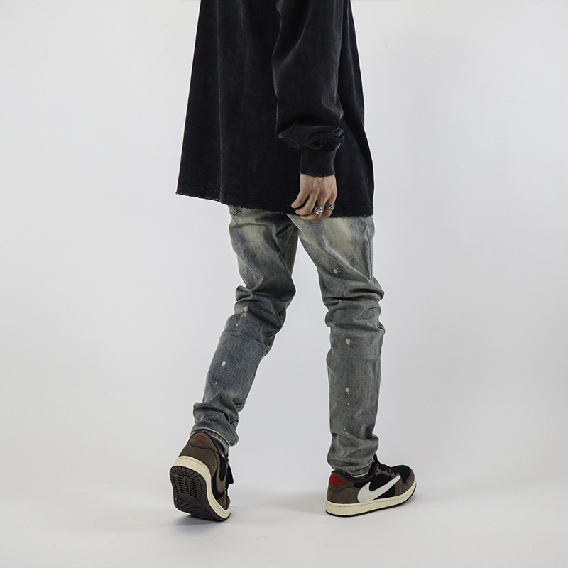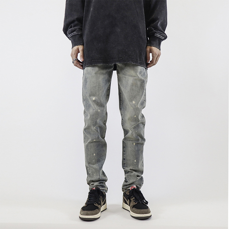 POCKET INS European and American high street pants American retro washed old straight ink splashed jeans tide brand men and women