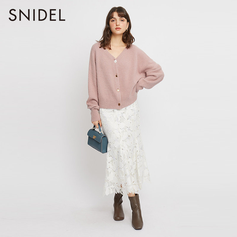 SNIDEL21 Autumn Winter New Sky Cat Limited Sweet Beauty Pure Color V Collar Gem Button Knit Cardiovert SWNT214218