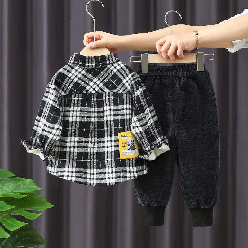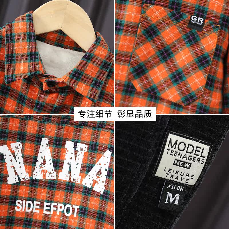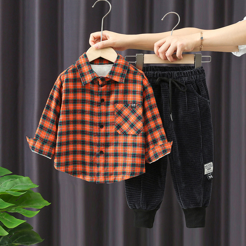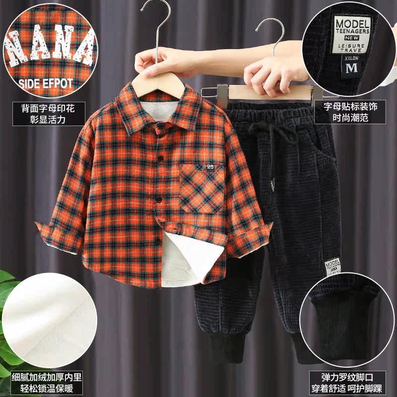 Boy Clothing Boy Autumn Winter Clothing Suit 2021 New Children Plus Suede Handsome Shirt Trendy Tide Baby Ocean Clothing Tide