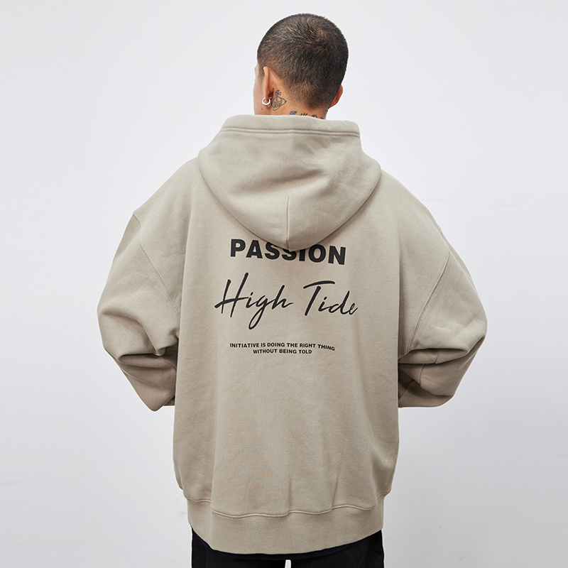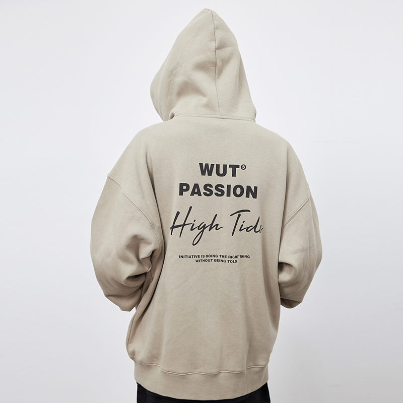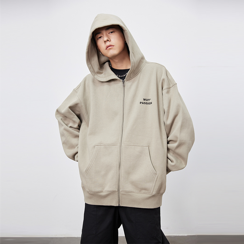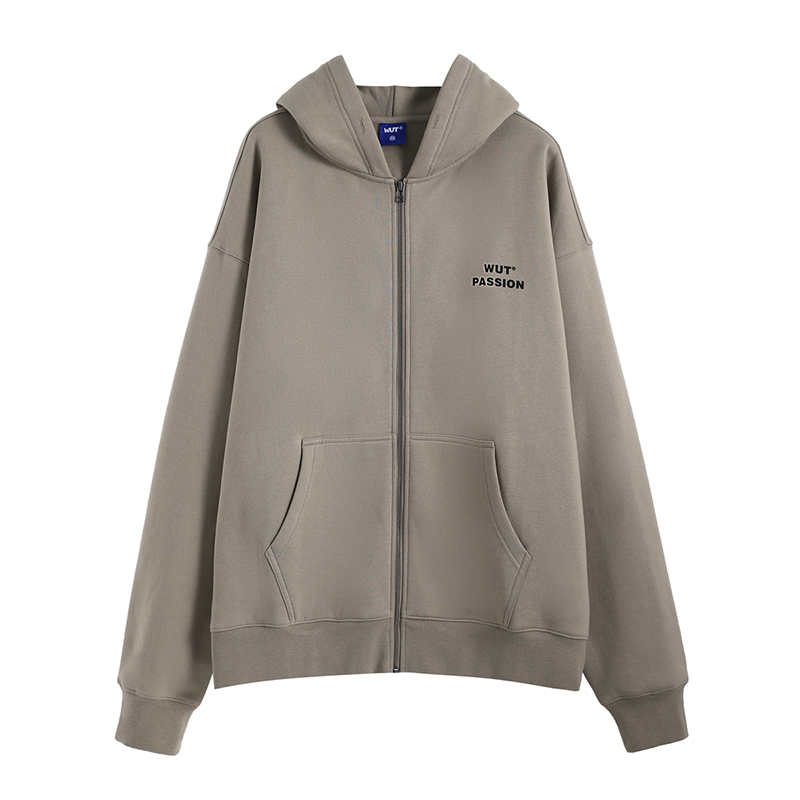 (WUT sugar-free brand) original cursive logo light mud color cardigan zipper sweatshirt 450g coat Xinjiang cotton